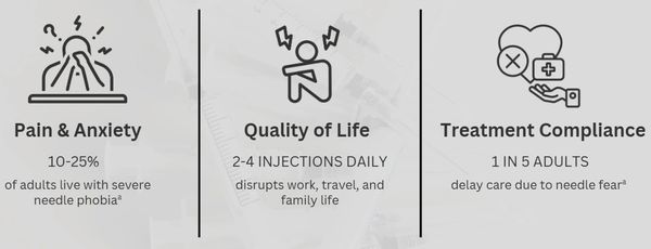 A single-use microneedle device that replaces the traditional needle for hormone injections. Port delivers the same prescribed fertility medications — but without the pain and trauma of a hypodermic needle.
